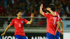 [OSEN=고양, 이대선 기자] 12일 오후 고양종합운동장에서 열린 2014 브라질 월드컵 최종예선 2차전 한국과 레바논의 경기, 전반 한국 이동국이 김보경의 선제골을 어시스트한 이근호를 축하하고 있다. 최강희 감독이 이끄는 축구
