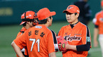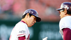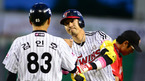 [OSEN=대구 ,백승철 기자] 12일 오후 대구 시민구장에서 열린 '2012 팔도 프로야구' 삼성 라이온즈와 한화 이글스의 경기 4회말 2루 김혁민이 정민철 코치와 이야기를 나누고 있다. 이날 삼성은 오른손 투수 배영수를 선발로 내세웠