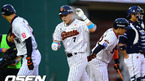 [OSEN=부산,박준형 기자] 12일 오후 부산 사직구장에서 열린 2012 팔도 프로야구 롯데 자이언츠와 두산 베어스의 경기 2회말 1사 3루 롯데 박준서가 선취 2점 홈런을 날리고 타구를 바라보고 있다 두산은 이날 셋업맨 노경은 다시