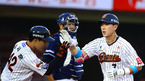 [OSEN=목동, 민경훈 기자] 12일 오후 목동구장에서 열린 '2012 팔도 프로야구' 넥센 히어로즈와 KIA 타이거즈의 경기에서 2회말 2사 주자 3루 넥센 이택근이 좌월 투런 홈런을 날린 후 홈에서 선행주자 정수성과 하이파이브를 하고 있