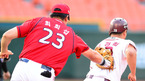 [OSEN=대구 ,백승철 기자] 12일 오후 대구 시민구장에서 열린 '2012 팔도 프로야구' 삼성 라이온즈와 한화 이글스의 경기 3회초 1사 1루 강동우의 타석 배영수가 1루주자 오선진에 견제의 눈초리를 보내고 있다. 이날 삼성은 오른손