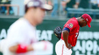 [OSEN=목동, 민경훈 기자] 12일 오후 목동구장에서 열린 '2012 팔도 프로야구' 넥센 히어로즈와 KIA 타이거즈의 경기에서 1회말 2사 주자 3루 넥센 박병호에게 선취 좌익수 앞 1타점 적시타를 맞은 KIA 선발 소사가 아쉬워하고 있다. 넥