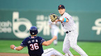 [OSEN=부산,박준형 기자] 12일 오후 부산 사직구장에서 열린 2012 팔도 프로야구 롯데 자이언츠와 두산 베어스의 경기 2회초 무사 1,2루 두산 양의지의 내야땅볼때 롯데 박준서 2루수가 1루 주자 이성열을 포스아웃한 후 병살아웃시