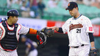 [OSEN=부산,박준형 기자] 12일 오후 부산 사직구장에서 열린 2012 팔도 프로야구 롯데 자이언츠와 두산 베어스의 경기 1회말 두산 노경은 선발투수가 하늘을 향해 손을 뻗고 있다 두산은 이날 셋업맨 노경은 다시 선발로 등판시켜