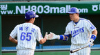 [OSEN=대구 ,백승철 기자] 12일 오후 대구 시민구장에서 열린 '2012 팔도 프로야구' 삼성 라이온즈와 한화 이글스의 경기 1회말 1사 3루 박석민의 1타점 적시타에 홈을 밟은 배영섭이 덕아웃으로 향하며 이승엽과 하이파이브를 하고