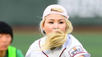 [OSEN=목동, 민경훈 기자] 12일 오후 목동구장에서 열린 '2012 팔도 프로야구' 넥센 히어로즈와 KIA 타이거즈의 경기에서 가수 알리가 시구를 한 후 턱돌이에게 안아달라고 하자 턱돌이가 거부하고 있다. 넥센은 26승 24패 1무로 4위