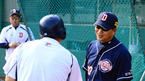 [OSEN=부산,박준형 기자] 12일 오후 부산 사직구장에서 열리는 2012 팔도 프로야구 롯데 자이언츠와 두산 베어스의 경기 전 두산 김진욱 감독이 이종욱의 훈련을 지켜보고 있다 두산은 이날 셋업맨 노경은 다시 선발로 등판시켜