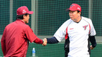 [OSEN=목동, 민경훈 기자] 12일 오후 목동구장에서 '2012 팔도 프로야구' 넥센 히어로즈와 KIA 타이거즈의 경기가 열린 예정인 가운데 경기 전 훈련시간에 KIA 선동열 감독이 넥센 박흥식 타격 코치와 악수를 나누고 있다. 넥센은 26