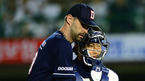 [OSEN=부산,박준형 기자] 13일 오후 부산 사직구장에서 열린 2012 팔도 프로야구 롯데 자이언츠와 두산 베어스의 경기 6회말 실점 위기를 넘기 니퍼트가 양의지와 하이파이브를 하고 있다. 롯데 선발 이용훈은 5⅔이닝동안 2피안타