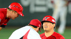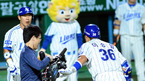 [OSEN=대구 ,백승철 기자] 13일 오후 대구 시민구장에서 열린 '2012 팔도 프로야구' 삼성 라이온즈와 한화 이글스의 경기 6회말 1사 이승엽이 솔로포를 친 후 홈에서 방송 카메라와 충돌을 하고 있다. 이날 삼성은 메이저리그 10승 투