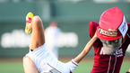 [OSEN=목동, 민경훈 기자] 13일 오후 목동구장에서 열린 '2012 팔도 프로야구' 넥센 히어로즈와 KIA 타이거즈의 경기에서 시구를 위해 마운드에 오른 가수 김소리가 턱돌이를 이용한 묘기를 선보이고 있다. 이 날 넥센과 KIA는 각각
