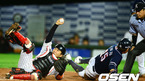 [OSEN=부산,박준형 기자] 13일 오후 부산 사직구장에서 열린 2012 팔도 프로야구 롯데 자이언츠와 두산 베어스의 경기 8회초 2사 만루 두산 허경민의 1타점 적시타때 2루 주자 양의지가 롯데 김사훈 포수에게 태그아웃되고 있다 롯