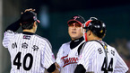 [OSEN=잠실, 곽영래 기자] 13일 오후 서울 잠실구장에서 열린 '2012 팔도 프로야구' LG 트윈스와 SK 와이번스의 경기, 5회초 1사 LG 김기태 감독이 마운드에 올라 이승우를 진정시키고 있다. LG와 SK의 신예 좌완투수 이승우(24)와 허준혁