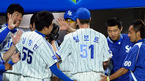 [OSEN=대구 ,백승철 기자] 13일 오후 대구 시민구장에서 열린 '2012 팔도 프로야구' 삼성 라이온즈와 한화 이글스의 경기 종료 후 삼성 선수들이 하이파이브를 하고 있다. 삼성의 투타 균형이 앞섰다. 선발 미치 탈보트가 6⅔이닝 1