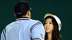 [OSEN=부산,박준형 기자] 13일 오후 부산 사직구장에서 열린 2012 팔도 프로야구 롯데 자이언츠와 두산 베어스의 경기 롯데 배트걸 신소정이 이민호 구심에게 공을 전달한 후 이야기를 나누고 있다. 롯데 선발 이용훈은 5⅔이닝동