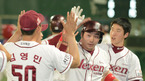 [OSEN=목동, 김영민 기자] 14일 오후 서울 목동구장에서 열린 2012 팔도 프로야구 넥센 히어로즈와 KIA 타이거즈와의 경기 6회말 박병호 백투백 홈런을 날리고 홈인 덕아웃 동료들의 환영을 받고 있다. 넥센 히어로즈의 '핵잠수함'