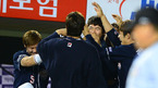 [OSEN=부산,박준형 기자] 14일 오후 부산 사직구장에서 열린 2012 팔도 프로야구 롯데 자이언츠와 두산 베어스의 경기 9회초 2사 2루 두산 양의지가 역전 2점 홈런을 날리고 동료들의 축하를 받고 있다 롯데 자이언츠 우완 진명호는