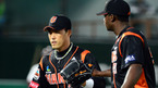 [OSEN=인천, 이대선 기자] 15일 오후 인천 문학야구장에서 열린 '2012 팔도 프로야구' SK 와이번스와 한화 이글스의 경기, 6회초 2사 1,2루 SK 윤희상이 한화 정범모를 우익수 플라이로 처리하고 더그아웃으로 가고 있다. SK와 한화는