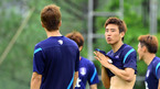 [OSEN=파주,박준형 기자] 5일 오전 경기도 파주 NFC에서 2012 런던올림픽 대표팀의 공개 훈련에서 구자철과 기성용이 이야기를 나누고 있다. 홍명보호는 와일드카드의 자리에 박주영(27, 아스날) 정성룡(27, 수원) 김창수(27, 부산)가
