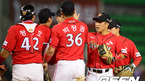 [OSEN=잠실, 지형준 기자] 19일 오후 서울 잠실구장에서 열린 '2012 팔도 프로야구' LG 트윈스와 SK 와이번스의 경기, 9회 공수교대에 SK 이만수 감독이 LG 배트걸에 가로막혀 있다. 이날 LG는 좌완 에이스 벤자민 주키치, SK는 마리오 산