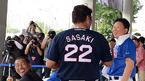 [OSEN=잠실, 지형준 기자] 20일 오후 서울 잠실구장에서 열린 '한일 프로야구 레전드 매치 2012' 경기, 경기에 앞서 팬사인회를 하며 사사키와 선동렬 감독이 인사를 나누고 있다. 이날 경기에는 각각 한국 22명, 일본 18명의 프로야