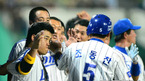 [OSEN=대구, 이대선 기자] 24일 오후 대구야구장에서 열린 '2012 팔도 프로야구' 삼성 라이온즈와 SK 와이번스의 경기, 4회말 1사 2루 삼성 진갑용의 우전 역전 적시타때 홈을 밟은 2루주자 조동찬이 더그아웃에서 동료들의 축하를 받