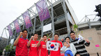 [OSEN=뉴캐슬(영국),올림픽공동취재단] 25일 오전(현지시각) 영국 뉴캐슬 세인트 제임스 파크 앞에서 한국 교민들이 대한민국 올림픽 축구대표팀의 선전을 기원하며 파이팅을 외치고 있다.