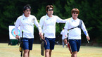 [런던=AFP] 로즈 크리켓 경기장에서 열리고 있는 남자 양궁 개인 예선전에서 미국의 엘리슨 브래디(Ellison Brady,가운데) 선수와 영국의 알란 윌스(Alan Wills,오른쪽) 선수가 나란히 활시위를 당기고 있다. 2012.07.27. AFP / TOSHIFUMI KITAMURA /