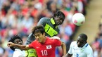 [OSEN=런던(영국), 올림픽공동취재단] 2일(한국시간) 새벽 영국 런던 웸블리 스타디움에서 벌어진 2012런던올림픽 남자축구 조별리그 B조 최종전 가봉과의 경기, 후반 대한민국 기성용과 가봉 은돔부의 신경전때 양팀 선수들이 말