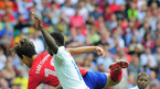 [OSEN=런던(영국), 올림픽공동취재단] 2일(한국시간) 새벽 영국 런던 웸블리 스타디움에서 벌어진 2012런던올림픽 남자축구 조별리그 B조 최종전 가봉과의 경기, 후반 대한민국 박주영이 가봉 은동과 공중볼 다툼을 하고 있다. 홍