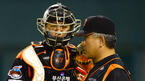 [OSEN=잠실,박준형 기자] 7일 오후 서울 잠실구장에서 열린 2012 팔도 프로야구 LG 트윈스와 롯데 자이언츠의 경기 9회말 2사 1,3루 롯데 양승호 감독이 강민호 포수와 이야기를 나누고 있다. LG와 롯데 양 팀은 시즌 12차전에서 주키