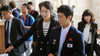 [OSEN=런던(영국),올림픽공동취재단] 9일 오전(현지시간) '2012 런던올림픽' 대한민국 선수 및 임원단이 영국 런던 세인트폴 대성당에 위치한 한국전쟁 참전용사 추모비를 방문해 가졌다. 추모비를 찾은 양학선과 남현희가 시민들