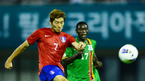 [OSEN=안양 ,백승철 기자] 15일 오후 안양종합운동장에서 열린 한국 축구 대표팀과 잠비아의 평가전 경기 전반 잠비아에 골을 내준 김영광이 허탈한 미소를 짓고 있다. 최강희 감독이 이끄는 대표팀은 런던 올림픽에 출전해 피로