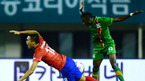[OSEN=안양 ,백승철 기자] 15일 오후 안양종합운동장에서 열린 한국 축구 대표팀과 잠비아의 평가전 경기 전반 김신욱이 문전에서 공중볼 다툼을 하고 있다. 최강희 감독이 이끄는 대표팀은 런던 올림픽에 출전해 피로가 누적된