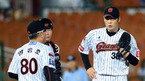 [OSEN=부산 ,백승철 기자] 4일 오후 부산 사직구장에서 열린 '2012 팔도 프로야구' 롯데 자이언츠와 KIA 타이거즈의 경기 7회초 2사, 양승호 감독과 정대현이 이야기를 나누고 있다. 4강 진입의 갈림길에 선 KIA는 '도미니칸 특급' 우완