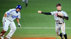 [OSEN=대구, 민경훈 기자] 4일 오후 대구 시민구장에서 열린 '2012 팔도 프로야구' 삼성 라이온즈와 LG 트윈스의 경기에서 6회말 1사 주자 1루 삼성 조동찬의 2루수 앞 병살타때 LG 유격수 오지환이 2루에서 박한이를 포스아웃 시킨
