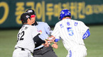 [OSEN=대구, 민경훈 기자] 4일 오후 대구 시민구장에서 열린 '2012 팔도 프로야구' 삼성 라이온즈와 LG 트윈스의 경기에서 3회말 무사 주자 2루 삼성 김상수의 유격수 앞 땅볼때 조동찬이 2루와 3루 사이에서 협살을 당하고 있다. 삼