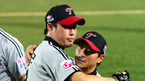 [OSEN=부산 ,백승철 기자] 4일 오후 부산 사직구장에서 열린 '2012 팔도 프로야구' 롯데 자이언츠와 KIA 타이거즈의 경기 종료 후 용덕한과 김사율이 하이파이브를 하고 있다. 롯데는 이날 경기에서 4-2로 승리를 거뒀다. 이날 승리로