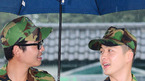 OSEN=용인, 민경훈 기자] 4일 오전 경기도 용인시 처인구 3군 사령부 앞에서 전역한 배우 정경호가 우천 속에서 배우 김혜성 상병의 손을 꼭 잡고 기자회견 장소로 이동하고 있다. 정경호는 2004년 드라마 ‘알게 될 거야’로 데뷔