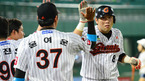 [OSEN=부산 ,백승철 기자] 4일 오후 부산 사직구장에서 열린 '2012 팔도 프로야구' 롯데 자이언츠와 KIA 타이거즈의 경기 7회말 2사 만루 손아섭의 3타점 2루타에 홈을 밟은 2루주자 전준우가 덕아웃에서 동료들과 하이파이브를 하고