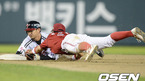 [OSEN=잠실, 민경훈 기자] 9일 오후 서울 잠실구장에서 열린 '2012 팔도 프로야구' LG 트윈스와 KIA 타이거즈의 경기에서 7회말 1사 주자 1루 김용의 타석에서 1루 주자 박용택이 2루 도루를 시도, 홍정호의 태그를 피한 후 손을 뻗고