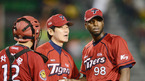 [OSEN=잠실, 민경훈 기자] 9일 오후 서울 잠실구장에서 열린 '2012 팔도 프로야구' LG 트윈스와 KIA 타이거즈의 경기에서 7회말 1사 주자 1,3루 LG 이진영 타석에서 KIA 선발 소사가 마운드를 내려오며 진해수가 마운드에 오르고 있다.