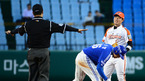 [OSEN=대전,지형준 기자] 11일 오후 대전구장에서 열린 '2012 팔도 프로야구' 한화 이글스와 삼성 라이온즈의 경기, 1회초 2사 1루에서 삼성 이승엽이 2루 도루에 성공하자 한화 한상훈이 아쉬워하고 있다. 이날 한화는 데니 바티스