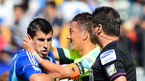 [OSEN=수원월드컵경기장, 곽영래 기자] 3일 오후 수원월드컵경기장에서 열린 '현대오일뱅크 K리그 2012' 그룹A 34라운드 수원 삼성과 FC 서울의 경기 전반 수원 스테보가 심판의 판정에 항의하려하자 서울 김진규가 스테보를 진정시