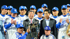 [OSEN=대구, 이대선 기자] 4일 오후 대구야구장에서 열린 '2012 팔도 프로야구' 삼성 라이온즈와 SK 와이번스의 경기에 앞서 삼성 선수들이 페넌트레이스 우승 트로피 전달식을 갖고 있다. 삼성은 지난 1일 2012 페넌트레이스를 제패,