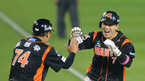 [OSEN=잠실,지형준 기자] 8일 오후 서울 잠실구장에서 열린 2012 팔도 프로야구 준플레이오프 1차전 두산 베어스(3위)와 롯데 자이언츠(4위)의 경기, 8회초 1사 1루에서 롯데 박준서가 동점 투런포를 날리고 동료선수들의 축하를 받