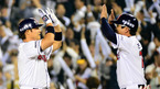 [OSEN=잠실, 김영민 기자] 8일 오후 서울 잠실구장에서 열린 2012 팔도프로야구 준 플레이오프 1차전 두산 베어스와 롯데 자이언츠 경기가 열렸다. 5회말 2사 3루 윤석민 역전 적시타때 3루 주자 김현수 득점을 올리며 덕아웃 동료