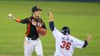 [OSEN=잠실, 김영민 기자] 8일 오후 서울 잠실구장에서 열린 2012 팔도프로야구 준 플레이오프 1차전 두산 베어스와 롯데 자이언츠 경기가 열렸다. 4회말 수비를 마친 롯데 선발 송승준이 실점위기에서 벗어나며 내야진과 화이팅