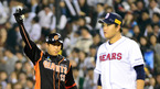[OSEN=잠실, 김영민 기자] 8일 오후 서울 잠실구장에서 열린 2012 팔도프로야구 준 플레이오프 1차전 두산 베어스와 롯데 자이언츠 경기가 열렸다. 4회초 2사 1,2루 문규현의 적시타때 2루주자 조성환 득점을 올리며 덕아웃 동료의