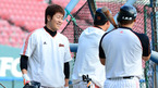 [OSEN=잠실,이대선 기자] 8일 오후 서울 잠실야구장에서 열린 2012 팔도프로야구 준PO1차전 두산 베어스와 롯데 자이언츠의 경기에 앞서 롯데 강민호가 동료 선수들과 이야기를 나누고 있다. 준 플레이오프 1차전 두산은 외국인 에